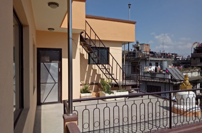 This space is located in the heart of Lalitpur. It sits on 3rd floor of the building and faces east and south with ample sunlight and fresh air all day long. There is a terrace just outside and above the room and is surrounded by balcony.
